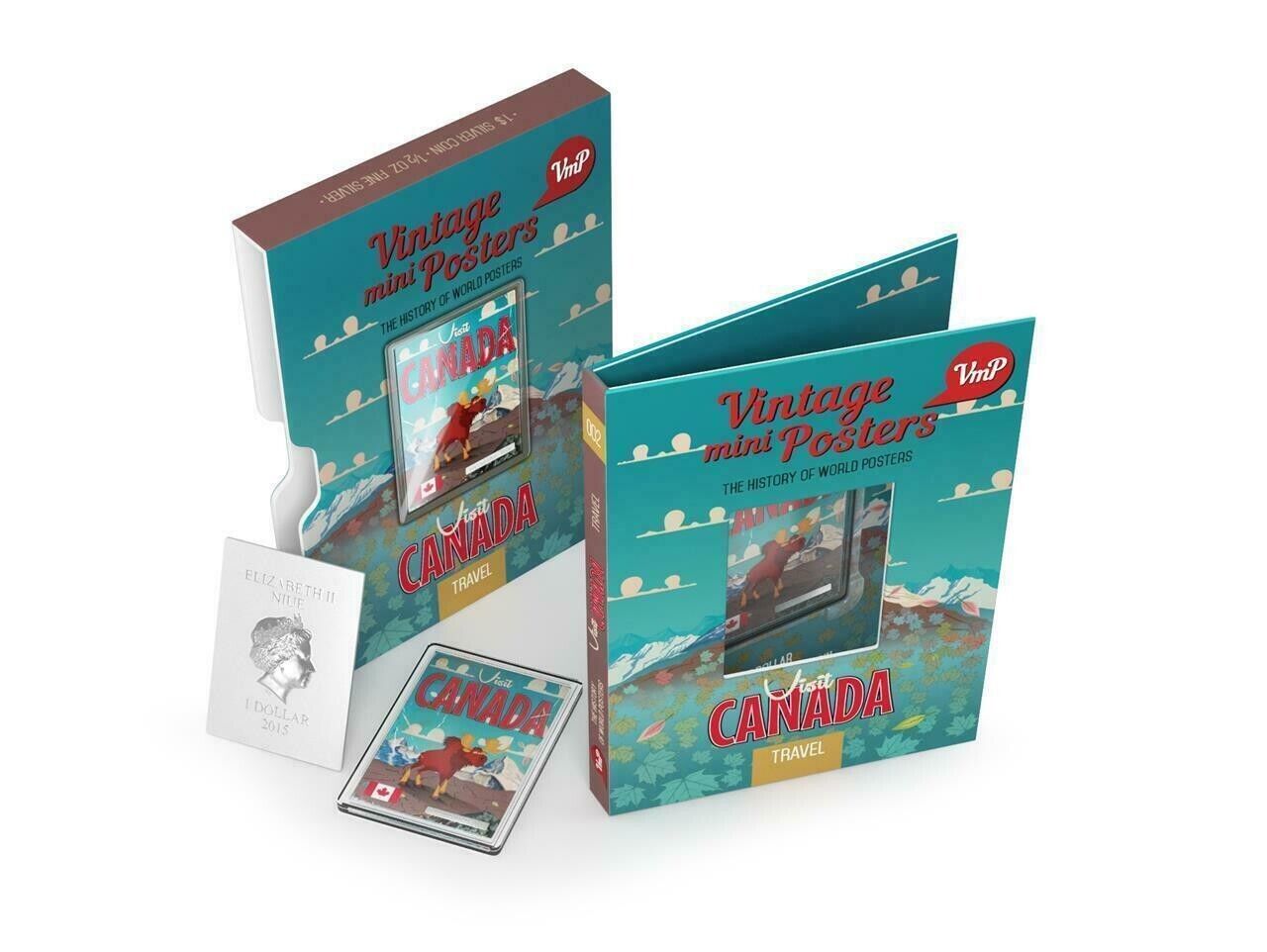 New directly from the Mint Genuine 100% Authentic 1/2 Oz Silver Coin 2015 Niue $1 Vintage Mini Posters Visit Canada only 1000 Made. Produced by PAMP. Unique design and Limited Edition.