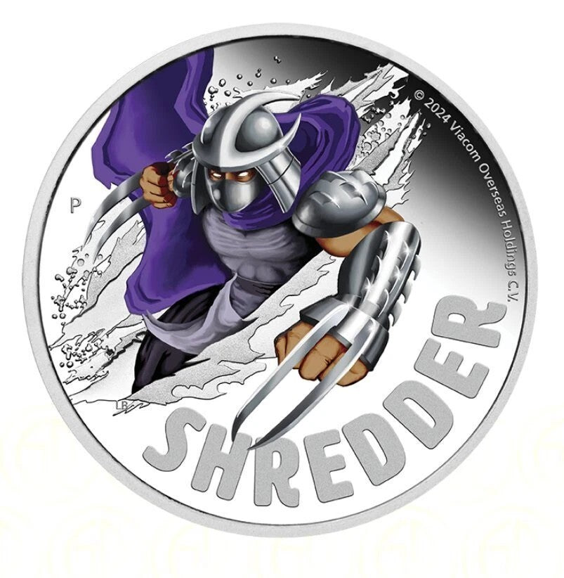 The Perth Mint will release no more than 5,000 of the Teenage Mutant Ninja Turtles – Shredder 2024 1oz Silver Proof Coloured Coin.