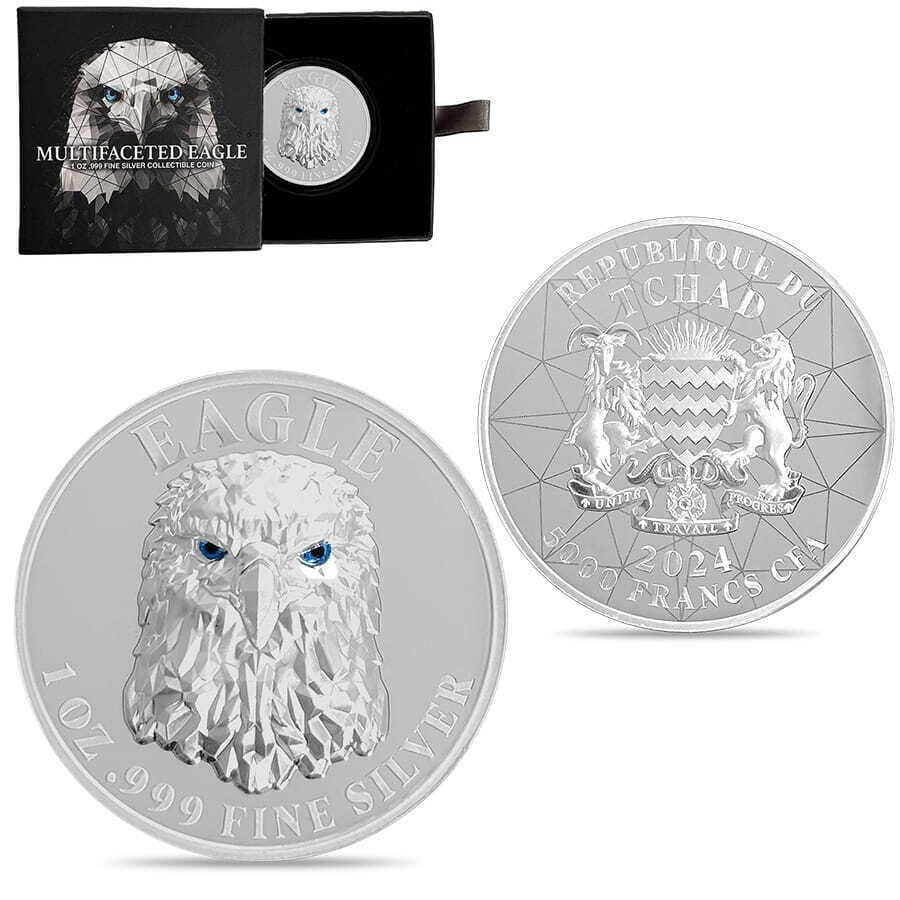 1 Oz Silver Coin 2024 Chad Multifaceted American Eagle UHR Ultra High Relief