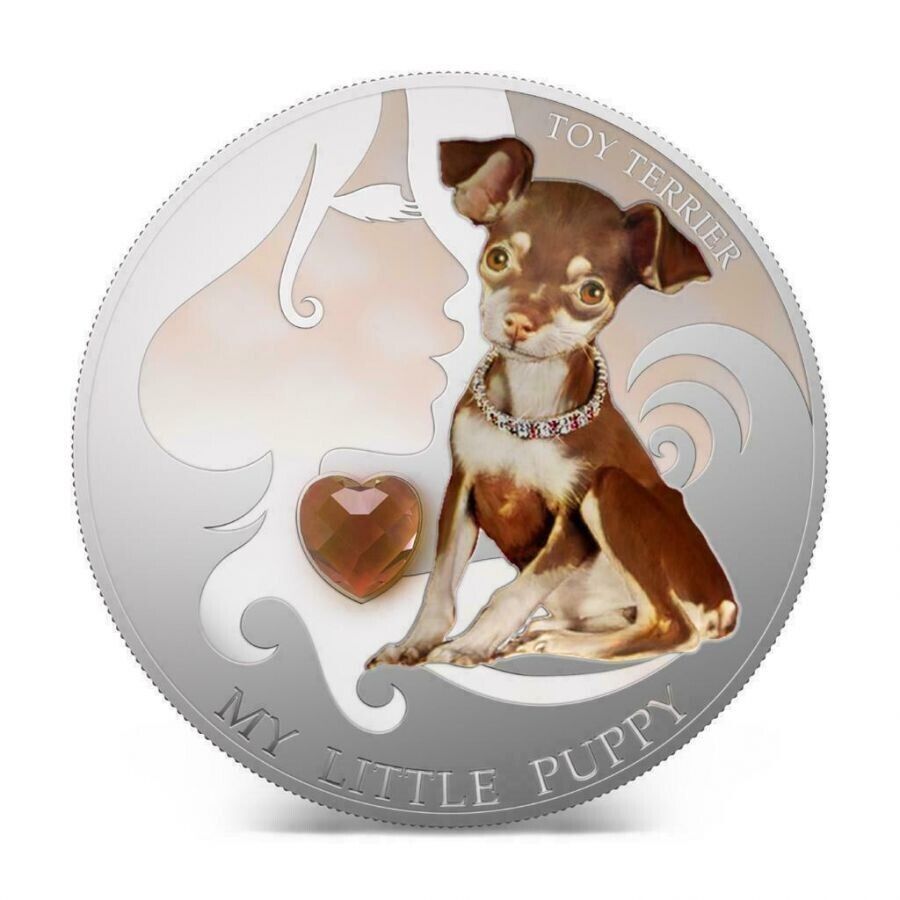 1 Oz Silver Coin 2013 $2 Fiji Dogs & Cats - My Little Puppy w/ stone - Toy Terrier