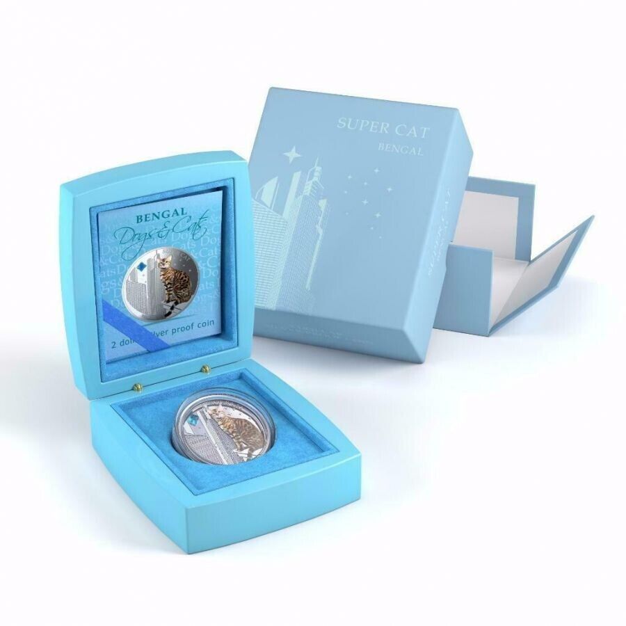 • 1 Oz Silver Coin 2013 $2 Fiji Dogs & Cats - Super Cat with stone - Bengal
