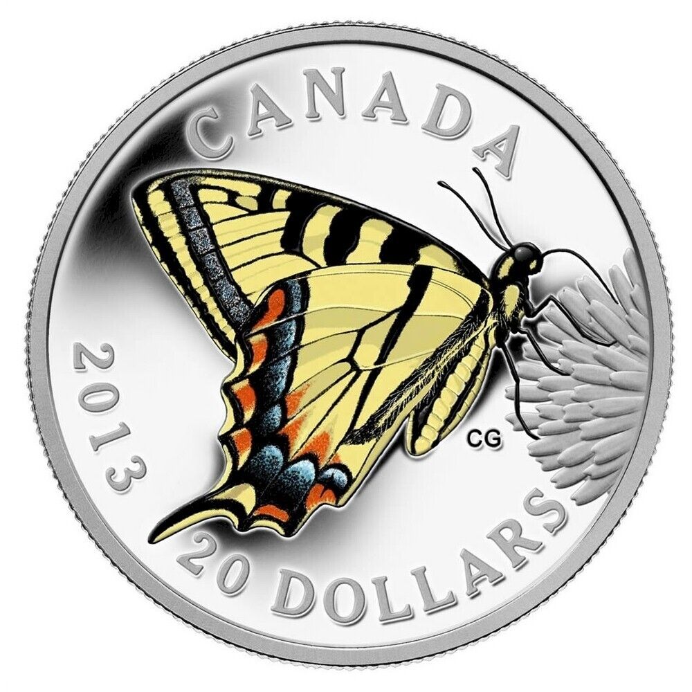 1 Oz Silver Coin 2013 $20 Canada Butterflied of Canada Tiger Swallowtail