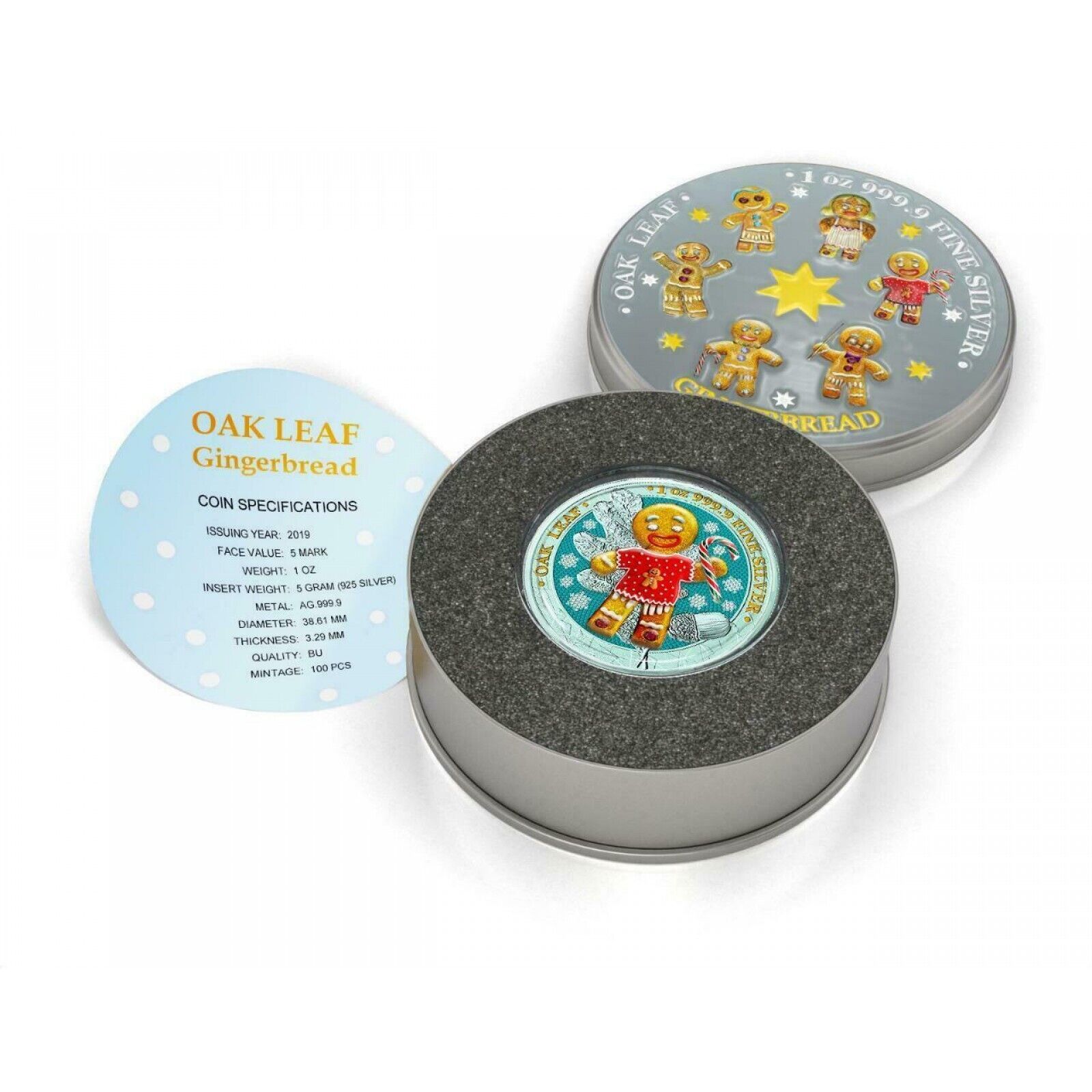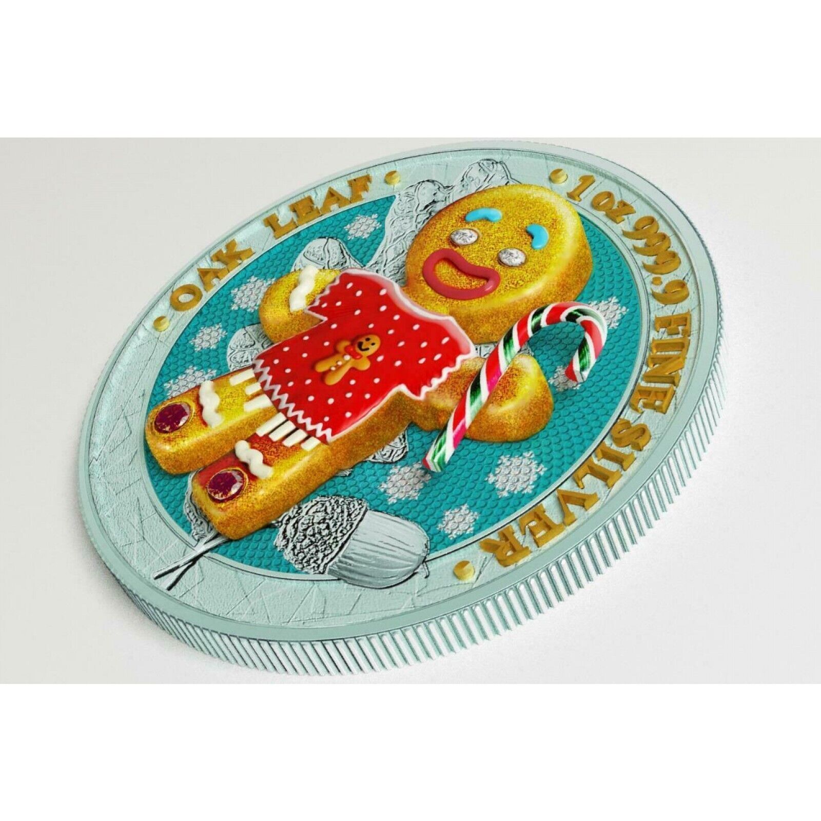 Новинка непосредственно от монетного двора, подлинная 100% подлинная серебряная монета весом в 1 унцию 2019 года, 5 марок из дуба Германии, украшенная драгоценными камнями, пряничный человечек — свитер Candy Cane. Уникальный дизайн и ограниченная серия.