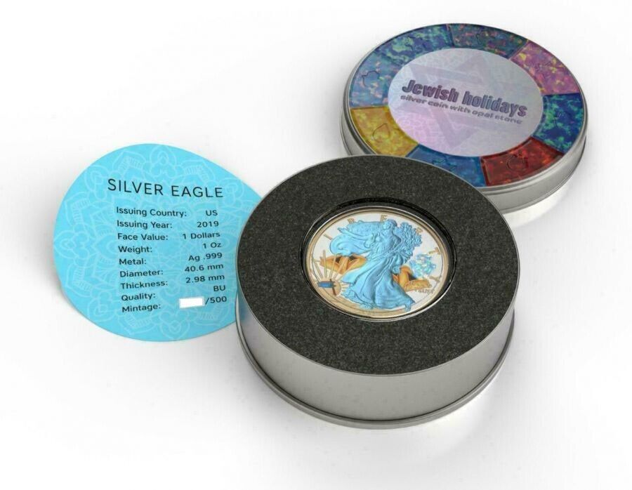 1 Oz Silver Coin 2019 American Eagle $1 Jewish Holidays Opal Hamsa Purim