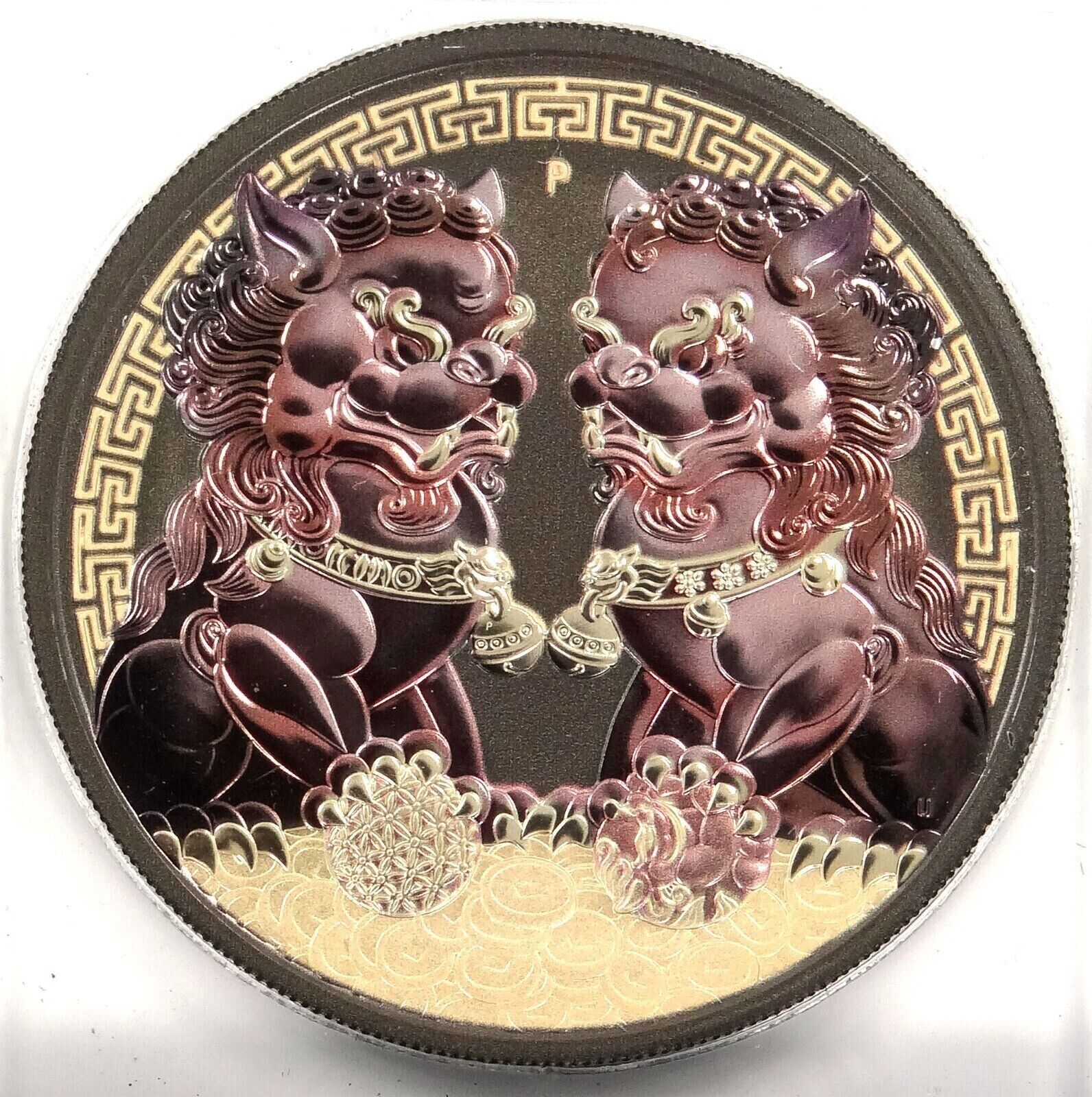 1 Oz Silver Coin 2020 $1 Australia Guardian Sky Lions Pixiu - Dark Red & Gilded
