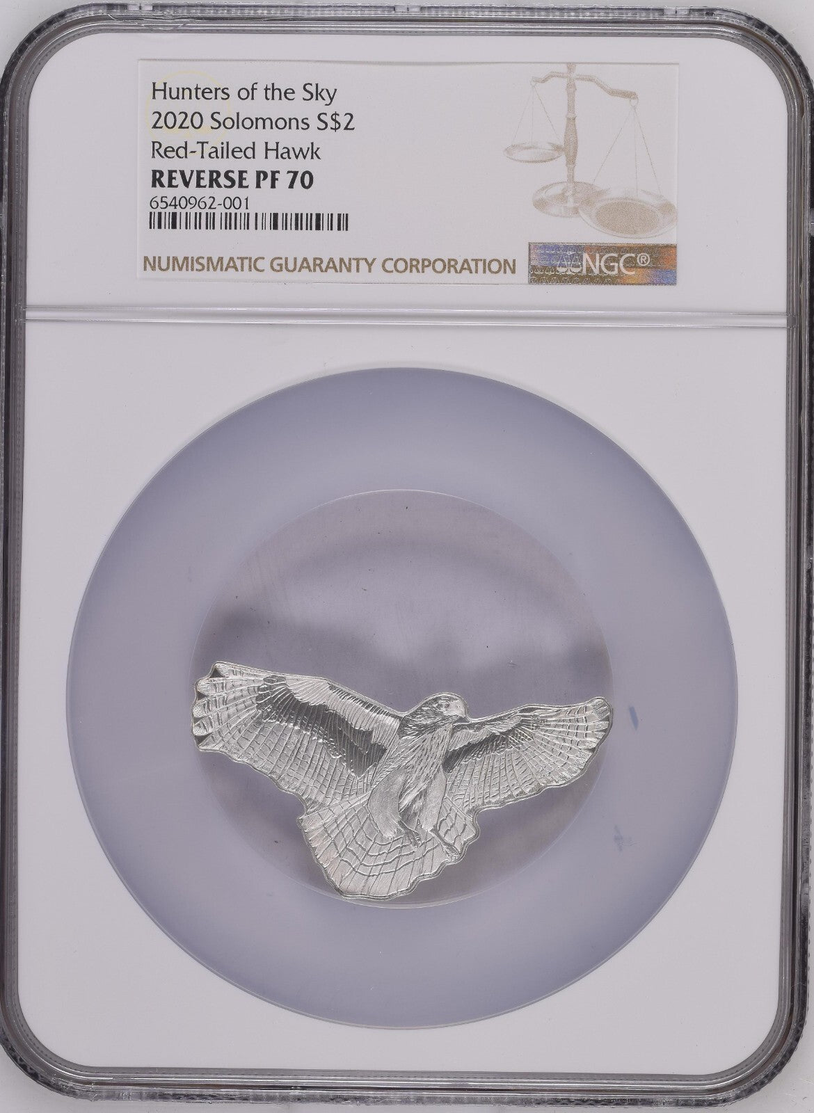 1 Oz Silver Coin 2020 Solomon Islands Hunters of the Sky Red-Tailed Hawk NGC Reverse PF 70 TOP POP 4!