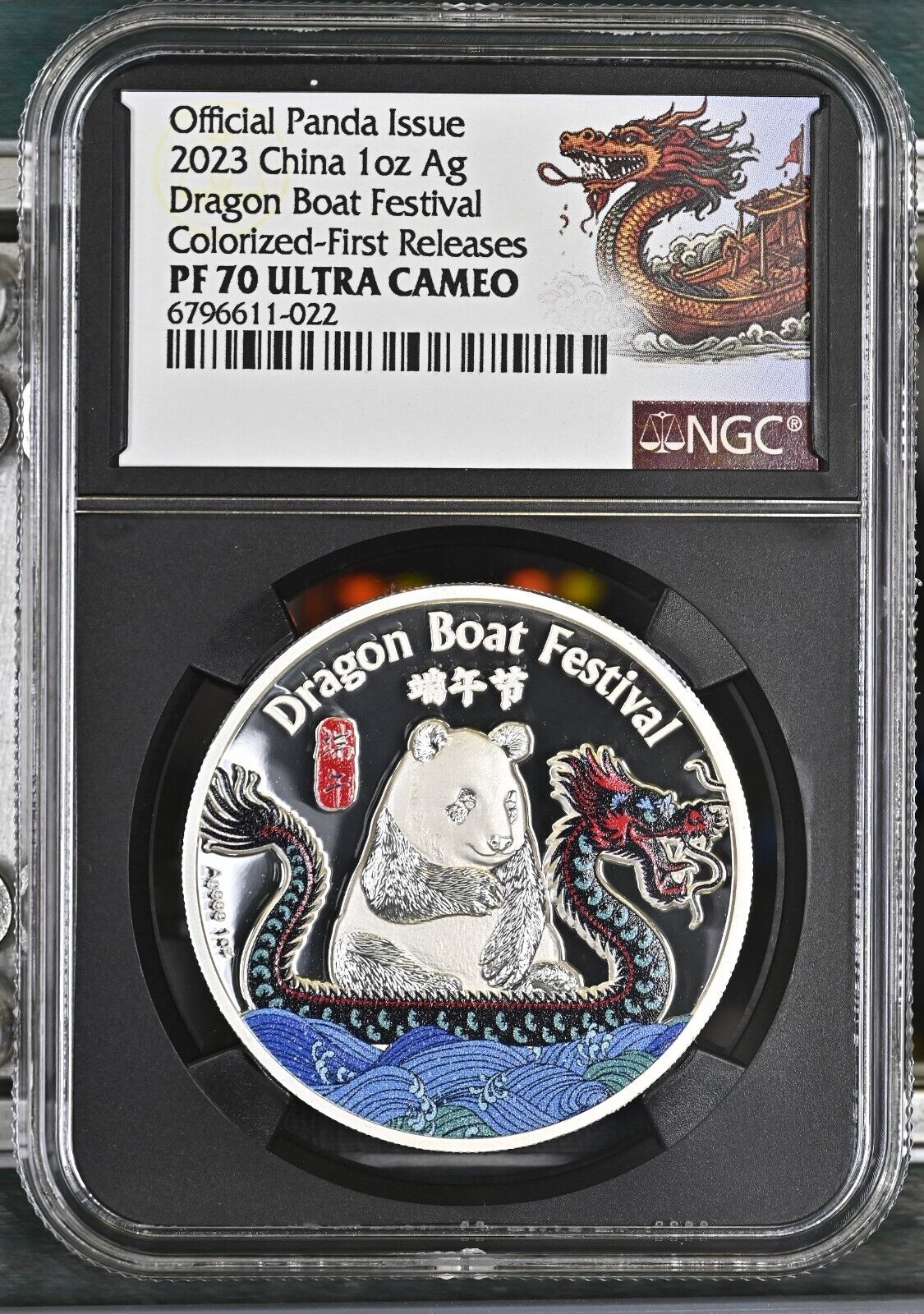 1 Oz Silver Coin 2023 China Official Panda Issue Dragon Boat Festival Colorized First Releases PF70 UC Ultra Cameo