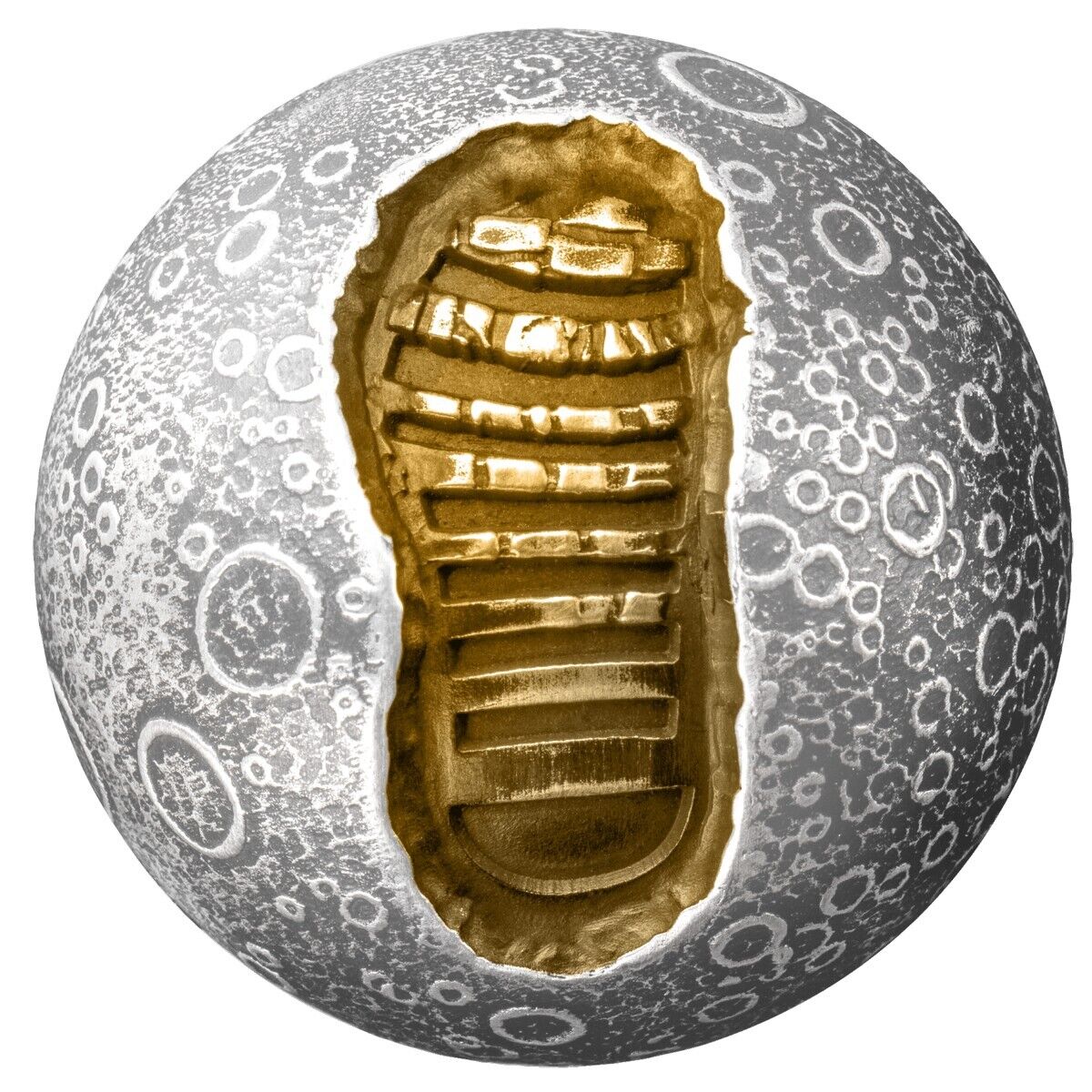 1 Oz Silver Coin 2024 Barbados $5 55th Anniversary Moon Landing Spherical Shaped Coin