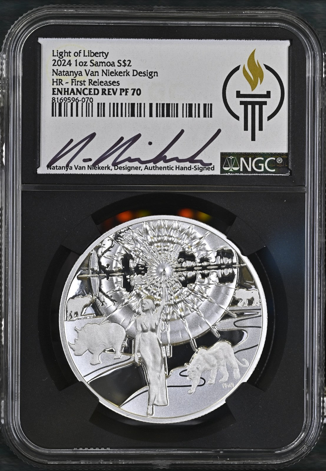 1 Oz Silver Coin 2024 Samoa $2 Natanya Light of Liberty NGC REV PF 70 FR Signed