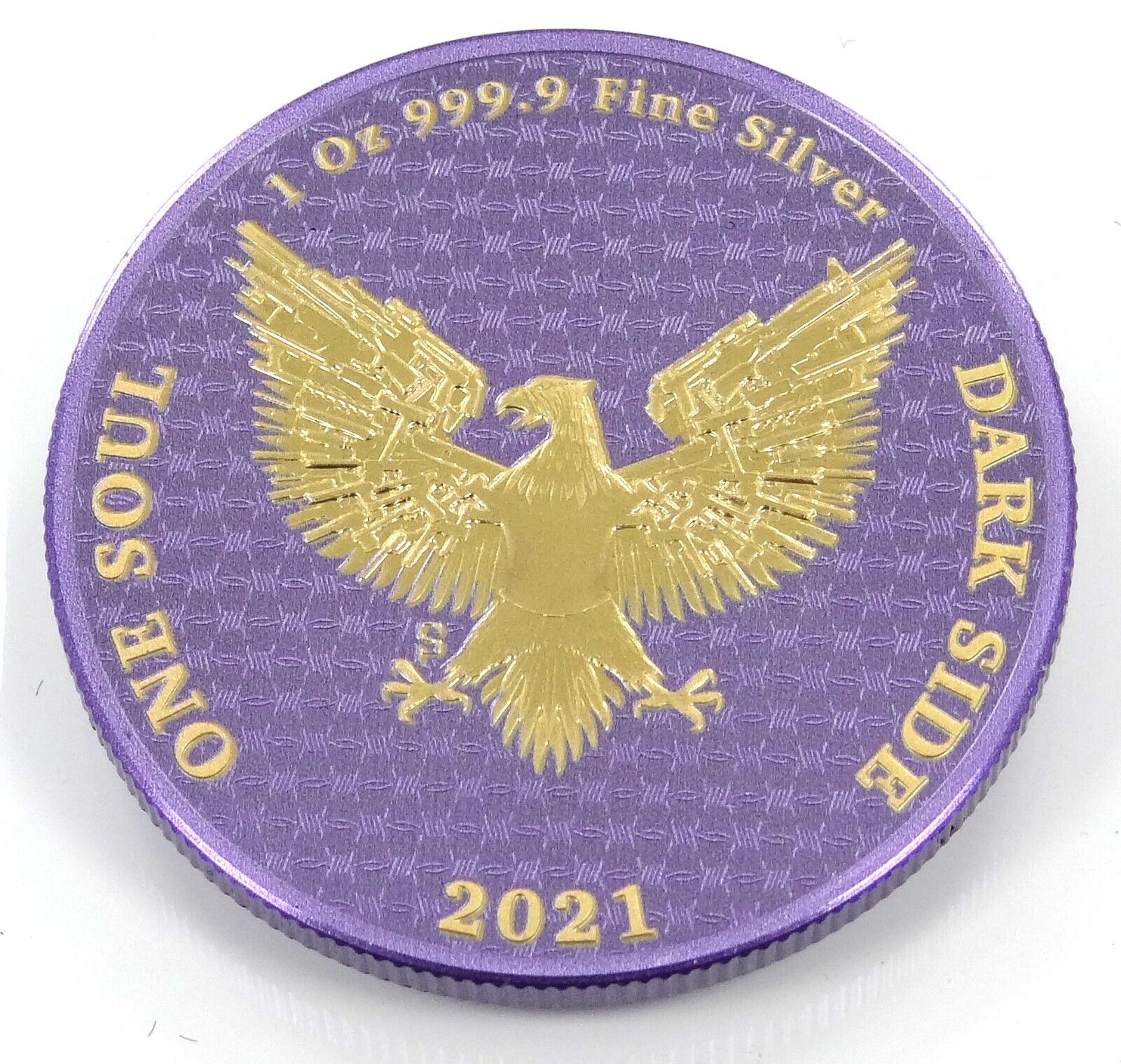 1 Oz Silver Coin Dark Side 2021 THE LIBERATOR Skull Gold / Violet Swarovski