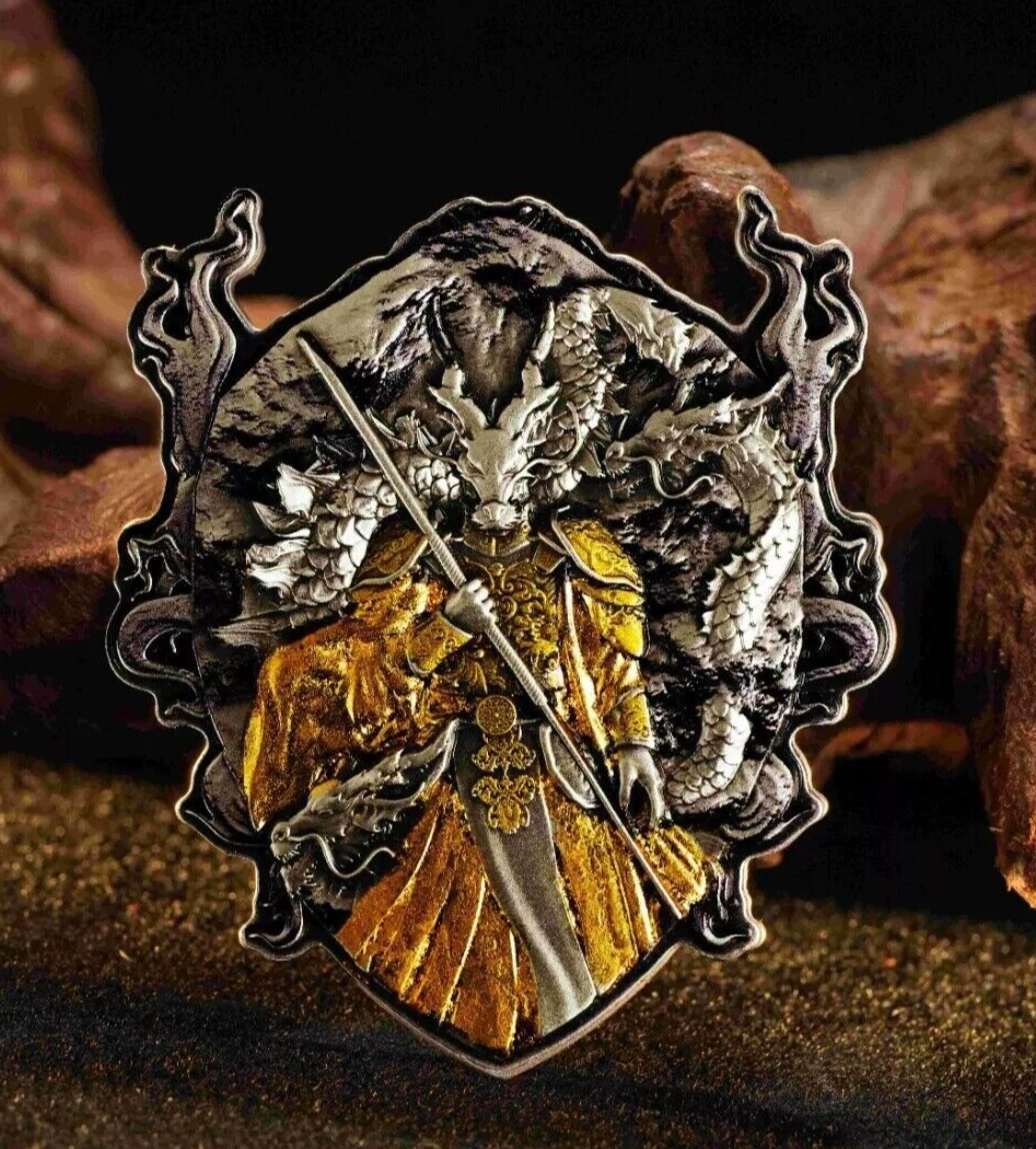 • 2 Oz Silver Coin 2025 Cameroon Dragon Warrior Guardian Eternal Dragon Amulet