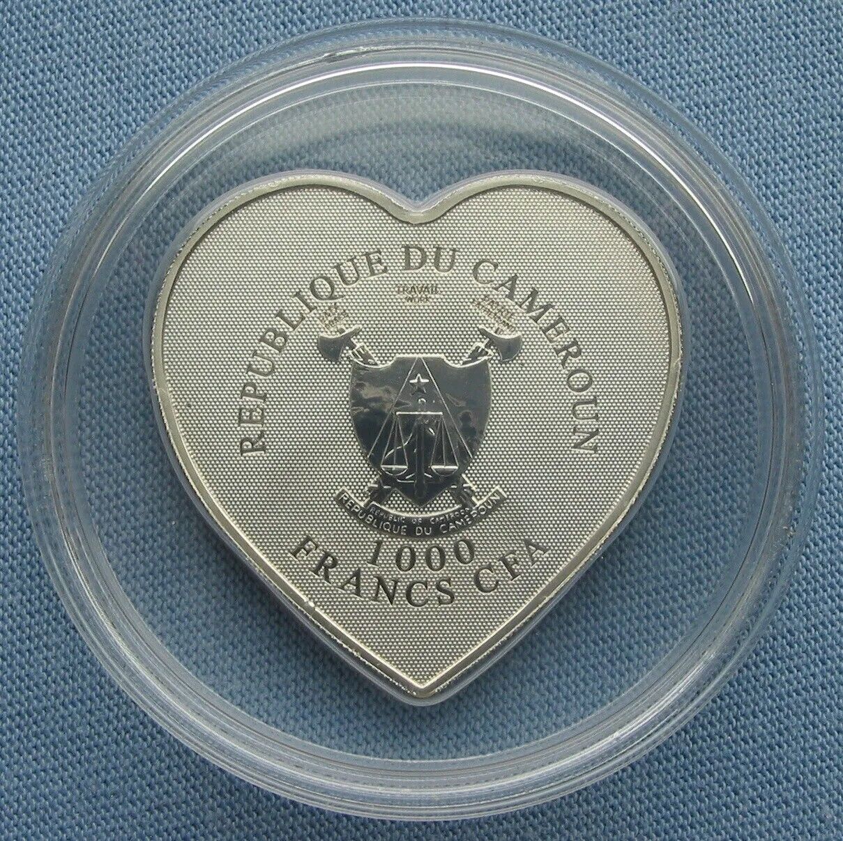 20g Silver Coin 2013 Cameroon 1000 Francs CFA Coeur d'amour L'Amour Heart of Love Hologram Angel