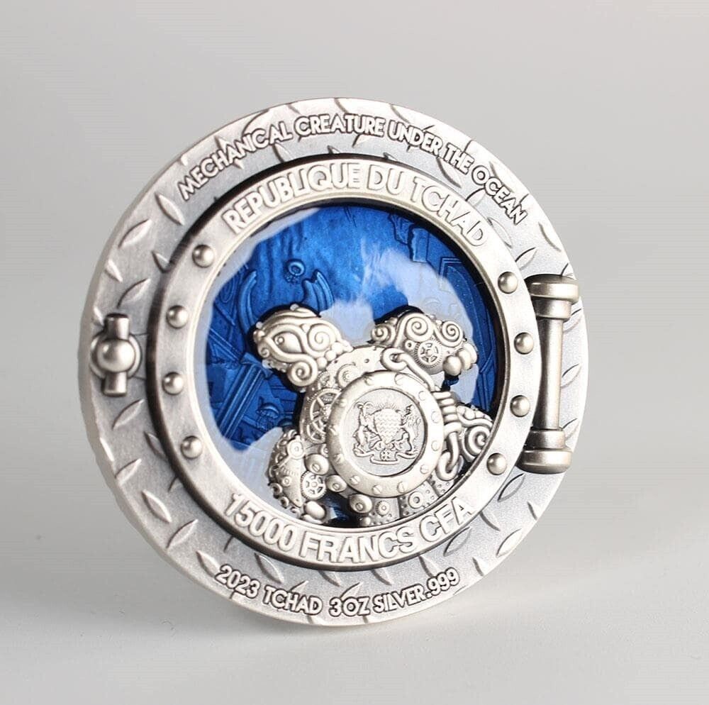 • 3 Oz Silver Coin 2023 Chad Mechanical Creature Under the Ocean Antiqued