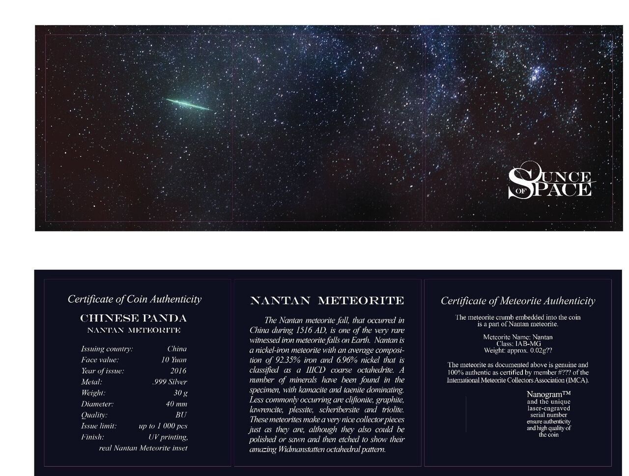 30g Silver Coin 2016 10 Yuan China Chinese Panda Nantan Meteorite Color Coin