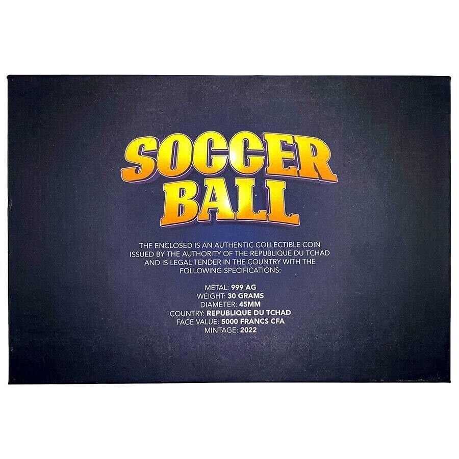 30g Silver Coin 2022 Chad 5000 Francs CFA Country Flags Soccer Ball Spherical